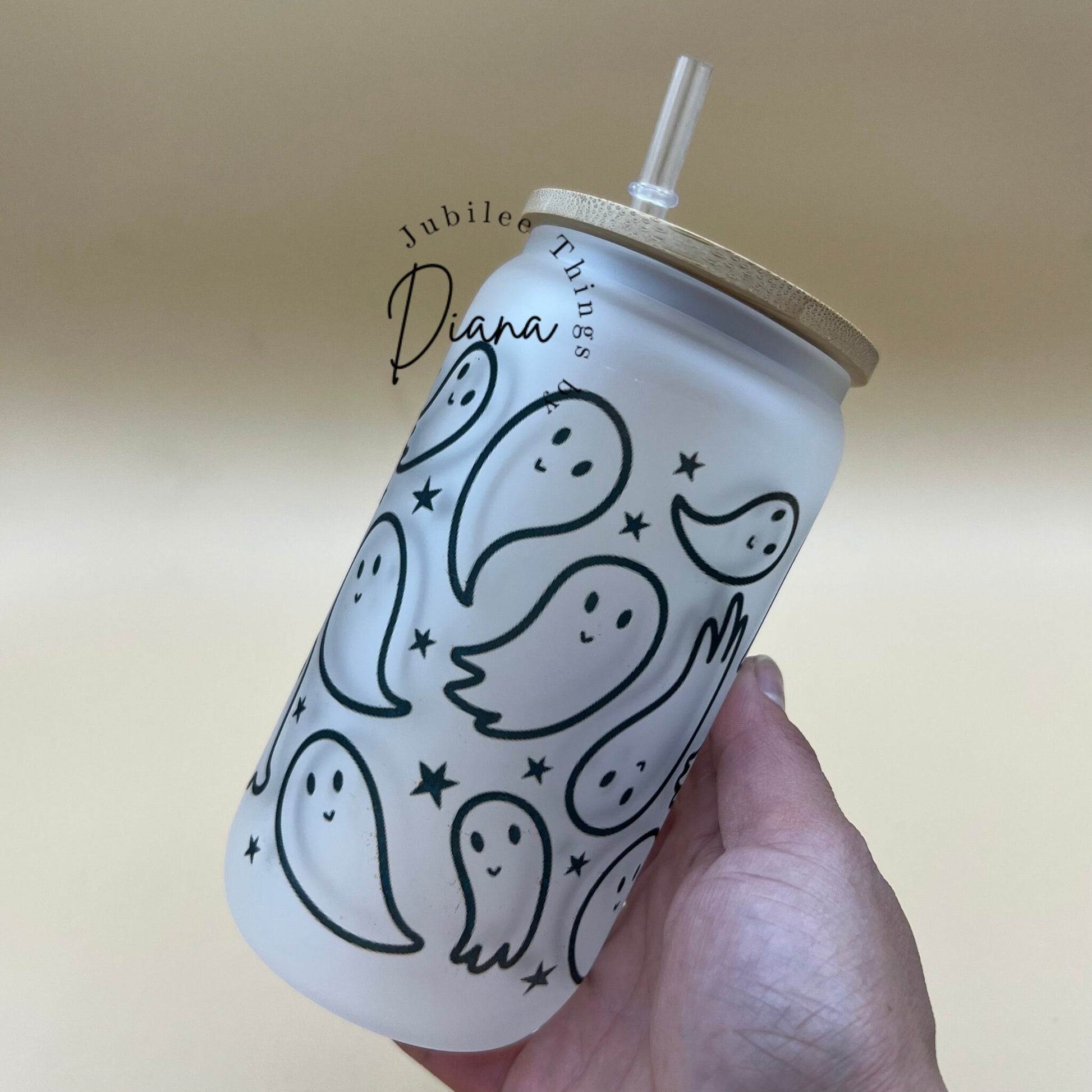 Cute Ghosts on a frosted 16oz Libbey Glass beer can cup